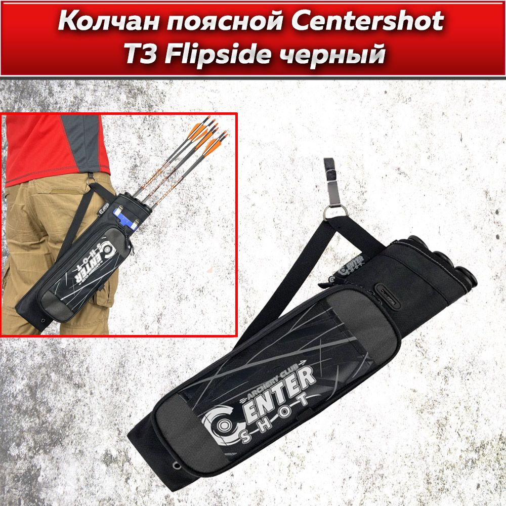 Колчан поясной Centershot T3 Flipside предназначен для спорта и практической стрельбы. Главной особенностью колчана является съемный вместительный карман, который крепится с помощью липучки Velcro с правой или с левой стороны колчана. Крепление колчана к поясу или карману штанов осуществляется с помощью клипсы. Стрелы помещаются в три раздельных тубуса. Колчан T3 Flipside выполнен из крепкого износоустойчивого материала, поэтому колчан не деформируется, не пропускает воду и прост в уходе. Имеется разъем под лучную т-образную линейку.