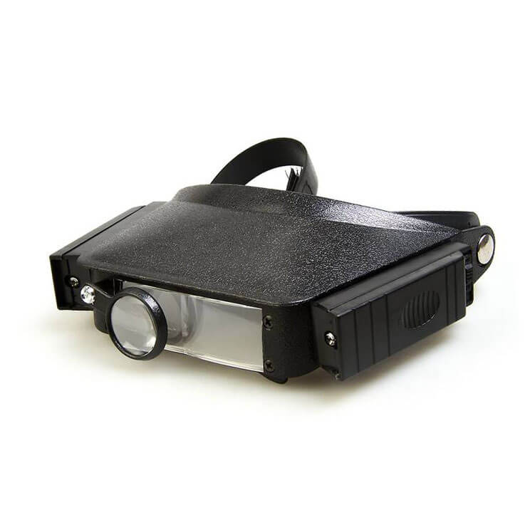 Увеличение 1,8x-3,7x, размер линзы 88x29 мм, налобная лупа, LED подсветка, дополнительная поворотная линза, ремешок на липучке.