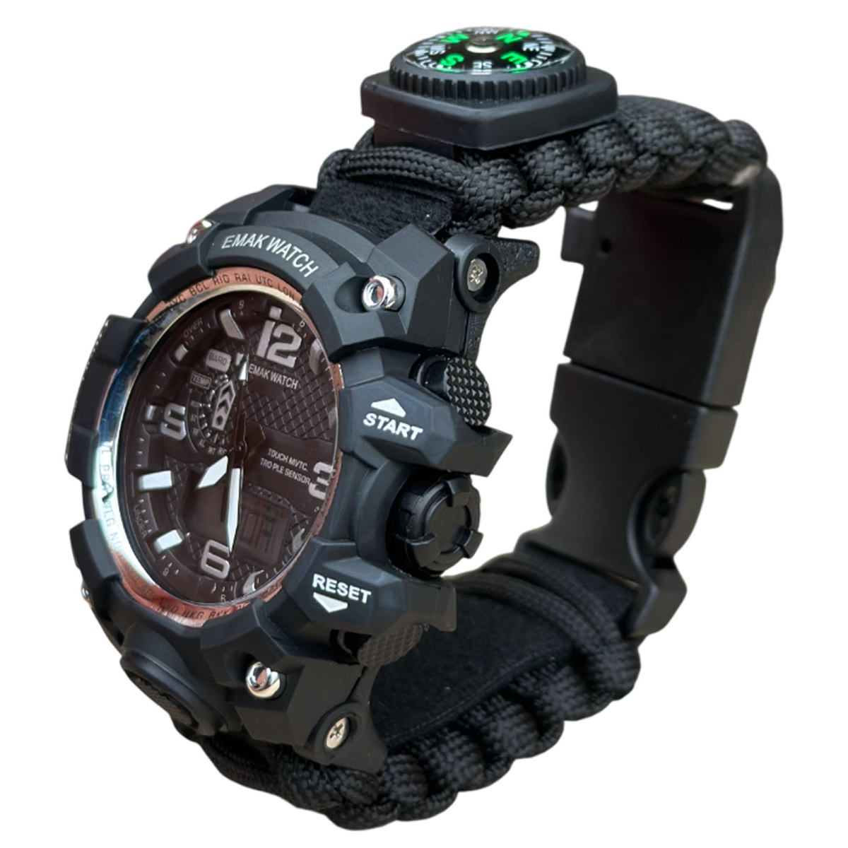 Мужские тактические часы Emak Watch. Эта модель сверхпрочная и очень надежная, поскольку создана специально для военных. Часы предусматривают использование в экстремальных условиях выживания.